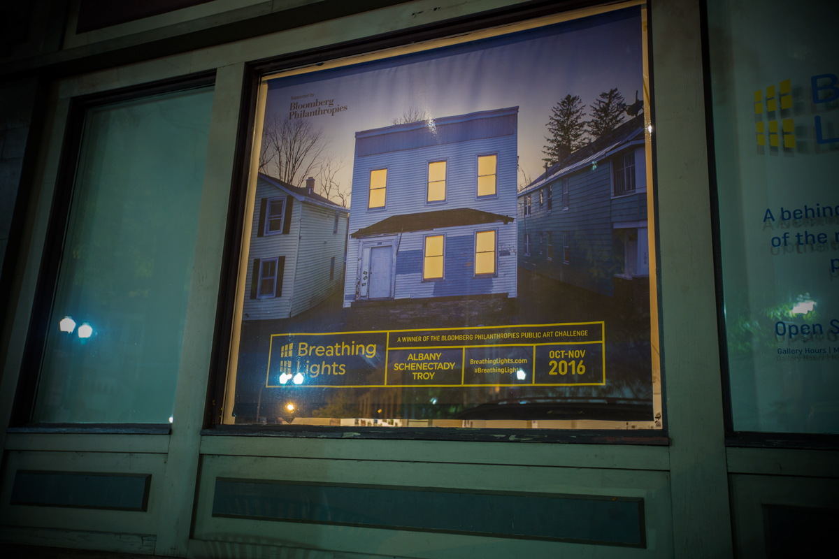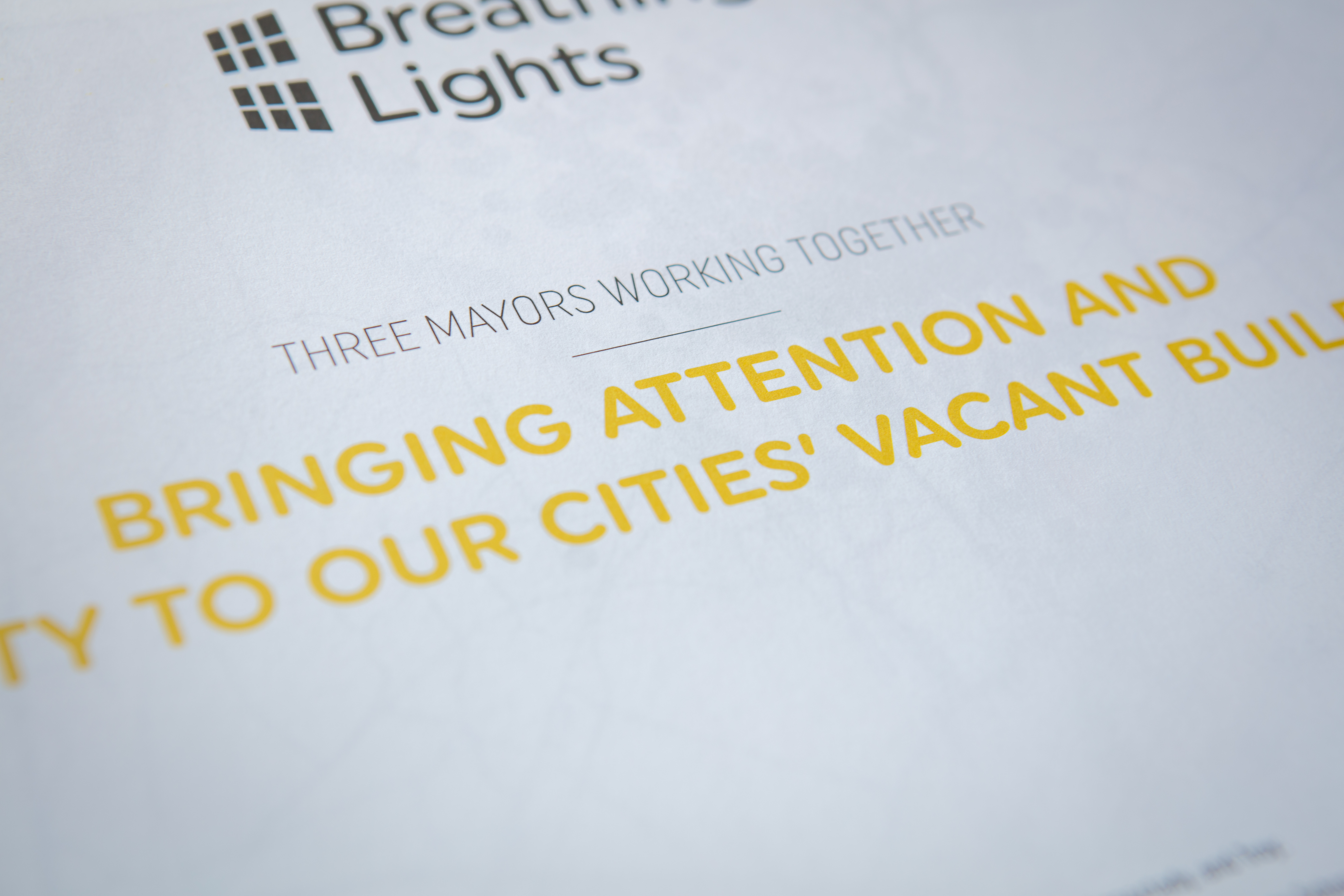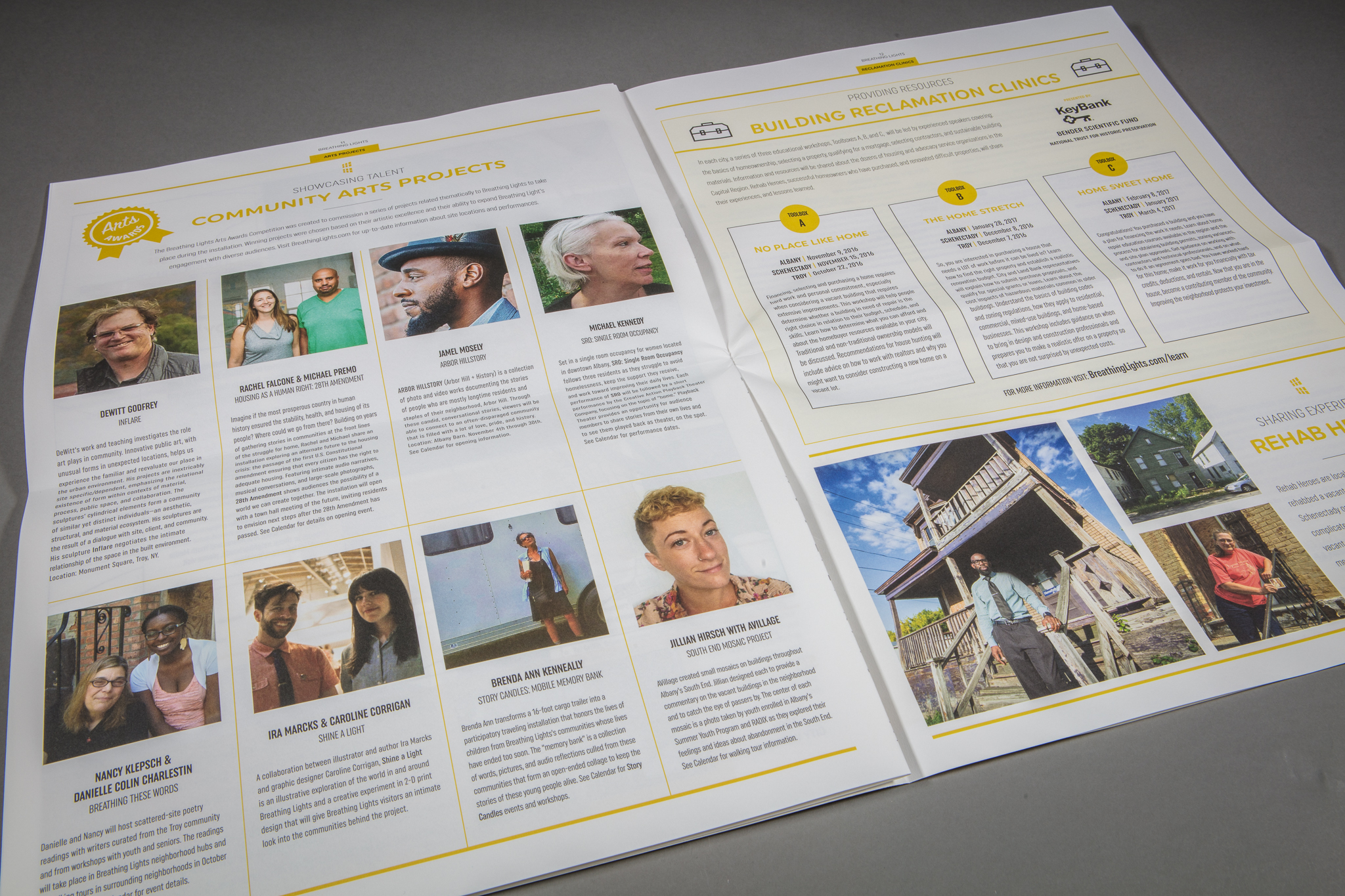 Breathing Light’s promotion and marketing strategy had two goals. First, to garner the attention of a large and diverse regional audience about the project and the issues surrounding vacancy. And second, to solicit participation of and provide resources to those living in the neighborhoods with the highest rates of vacancy. Accessing the project was free – anyone traversing neighborhood streets saw the illuminated buildings and participated in the experience. A robust marketing and PR campaign dove awareness and participation at neighborhood hubs and events. A project website and a widely distributed, 16-page Program Guide enhanced the visitor experience through rich content that included maps, photographs, quotes, and a calendar of events and resources for buying and redeveloping vacant properties.